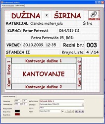 Štampanje etiketaOvaj modul omogućava štampanje etiketa za optimizovane elemente. Svaki korisnik može dizajnirati izgled etikete kakav mu odgovara. Moguće je snimiti više različitih izgleda etiketa i pozivati ih po potrebi. Interfejs je pravljen po uzoru na popularne programe što ovaj modul čini veoma jednostavnim za korišćenje. Unapredite vašu proizvodnju, olakšajte svojim kupcima/majstorima sklapanje nameštaja. Korisno je da svaki element na sebi ima nalepnicu na kojoj se nalaze svi relevantni podaci: dužina, širina, kantovanje, oznaka, ime kupca, sifra/oznaka materijala...