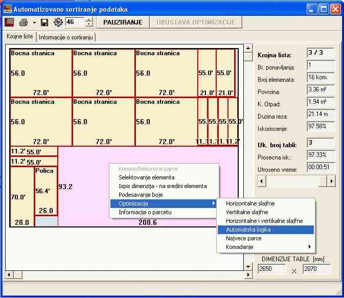 Optimizacija i vođenje magacina radnih ploča i frontova - opciono